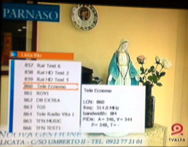 Tratto da: http://www.sviluppoeconomico.gov.it/index.php?option=comIl Ministro dello Sviluppo Economico ha firmato i decreti ministeriali che fissano le date per il passaggio alla tv digitale nel 2012. In attuazione del calendario nazionale, che prevede la conclusione dello switch off in tutto il Paese entro i primi sei mesi del prossimo anno, è stata prevista la seguente tempistica per le regioni ancora da digitalizzare: ABRUZZO - MOLISE (Inclusa la provincia di FOGGIA): dal 7 maggio al 23 maggio PUGLIA - BASILICATA (Incluse le province di COSENZA e CROTONE): dal 24 maggio all'8 giugno CALABRIA - SICILIA: dall'11 giugno al 30 giugno Per gestire al meglio le fasi di switch off in queste Regioni, sono già state costituite le task force organizzative. Nella giornata odierna si sono infine regolarmente concluse le operazioni di transizione al digitale nelle aree previste per il 2011. Sono circa 49 milioni gli italiani che, ad oggi, ricevono il segnale televisivo digitale. Entro il prossimo 30 giugno la copertura sarà estesa a tutta la popolazione. 17 DICEMBRE 2011 - Sabato Ore 15.40 - DTS - MUX SIGE 1 ANTENNA SICILIA: ELIMINATO POKERITALIA 24. Mux SIGE 1 ANTENNA SICILIA: In tutta la Sicilia, dove presente il mux SIGE 1 ANTENNA SICILIA, è stato eliminato il canale PokerItalia 24. Ora il multiplex è così composto: 10 - Antenna Sicilia (K2) 12 - Telecolor 11 - Teletna 13 - Video 3 26 - Cielo 52 - TG Norba 24 16 DICEMBRE 2011 - Venerdì Ore 20.15 - DTS - RTP: ATTIVATO IL SECONDO MUX SUL CANALE 48 UHF. UHF 48 RTP Mux 2: E' stato attivato il mux 2 di RTP, Radio Televisione Peloritana, sul canale 48 UHF, dalla postazione di Monte Carbonaro a Messina, frequenza su cui trasmetteva in precedenza in analogico la seconda emittente del gruppo RTP RETEDUE. Il multiplex contiene tre canali tv e una radio: RTP, con LCN 88 RTP RETEDUE, con LCN 89 TELE 90, con LCN 91 Antenna dello stretto (Radio) Ore 20.00 - DTS - MEDITERRANEO: ATTIVATO IL MUX SUL CANALE 55 UHF. UHF 55 Mux MEDITERRANEO: E' stato attivato alle ore 14.30 di oggi il mux di MEDITERRANEO sul canale 55 UHF, dalla postazione di Contrada Pagliarelli a Scicli, in provincia di Ragusa. Il multiplex contiene quattro canali: Mediterraneo, con LCN 11 Mediterraneo 2, con LCN 18 MediterraneoSat, con LCN 79 MediterraneoNews, con LCN 89 15 DICEMBRE 2011 - Giovedì Ore 21.00 - DTS - ANTENNA DEL MEDITERRANEO: ATTIVATO IL MUX SUL 59 UHF. UHF 59 Mux ANTENNA DEL MEDITERRANEO: Attivato ieri, 24h/24 sul canale 59 UHF (778 Mhz) il mux dell'emittente messinese ANTENNA DEL MEDITERRANEO. Il segnale copre tutta la costa tirrenica settentrionale da Patti a Tusa/Finale di Pollina e zone limitrofe (Messina). Grazie a Televideo69. 09 DICEMBRE 2011 - Venerdì Ore 11.40 - DTS - CANALE 33: CONVERTITE IN DIGITALE TRE FREQUENZE NEL PALERMITANO. UHF 22-44-62 Mux CANALE 33: Sono state convertite in digitale tre frequenze di CANALE 33 e precisamente: UHF 62 da Monte Pellegrino a Palermo, UHF 22 da Marineo (Palermo), e UHF 44 da Belmonte Mezzagno (Palermo). Il mux è composto da sette canali: - CANALE 33 - VIDEO 2 - TRS - TELEREPORTER SICILIA - VIDEO ITALIA 1 - VIDEO ITALIA 2 - VIDEO ITALIA 3 |
