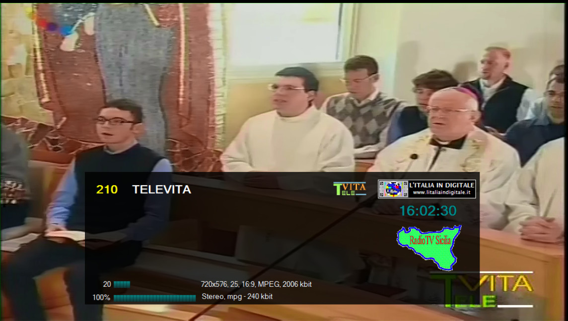 Ore 12.10 - MUX TCI - TELECOLOR INTERNATIONAL: ARRIVA I TV ITALIA. UHF 23 Mux TCI - TELECOLOR INTERNATIONAL E' stato aggiunto un nuovo canale I TV ITALIA con la numerazione LCN 251. Sotto il logo di stazione è presente la scritta TELENORD SAT, questa emittente infatti è legata alla genovese TELENORD. Inoltre segnaliamo, rispetto alla nostra ultima rilevazione, che AB Channel (LCN 606) è stata rinominata AB Channel - P.L.Salute ma non trasmette, è a schermo nero. Abbiamo aggiornato la griglia dei canali e lo z@pping TV con nuove immagini del mux TCI - TELECOLOR INTERNATIONAL. ![]() ![]() ![]() ![]() ![]() ![]() ![]() ![]() ![]() 1 GIUGNO 2014 - Domenica Ore 19.45 - MUX TVM: AGGIORNATA LA GRIGLIA DEI CANALI E LO Z@PPING TV. UHF 35 Mux TVM (A) UHF 35 Mux TVM (B) Aggiorniamo la griglia dei canali del multiplex palermitano TVM TELE VIDEO MARKET, che abbiamo diviso in due diverse composizioni. TVM Mux (A) che trasmette sull' UHF 35 dalla principale postazione di MONTE PELLEGRINO a Palermo e da altri cinque impianti, che potete consultare nella pagina relativa a questo multiplex. Nel mux (A) segnaliamo, rispetto alla nostra precedente rilevazione, che è stata eliminata SICILIAUNO (LCN 219) ed è tornata TSB Show con la LCN 684, che è un duplicato di TSB (LCN 292) con evidenti problemi tecnici sulla qualità video. ![]() ![]() TVM Mux (B) invece trasmette, sempre sull' UHF 35, dalla sola postazione di PIANA DELLE FORCHE ad Erice (Trapani) è composto da un solo canale, TVM con la LCN 18. ![]() ![]() Consulta la griglia dei canali e lo z@pping TV, aggiornato con nuove immagini, del mux TVM. ![]() ![]() ![]() ![]() ![]() 26 MAGGIO 2014 - Lunedì Ore 22.10 - MUX TV7 PARTINICO: ARRIVANO ALPA UNO E ALPA DUE - RTA RADIO TIVU' AZZURRA. VHF 07 / UHF 31-59 Mux TV7 PARTINICO Aggiorniamo la composizione del mux TV7 PARTINICO segnalando che da alcuni giorni sono stati aggiunti i canali ALPA UNO con la LCN 117 e ALPA DUE - (RTA) con la LCN 648. Quest'ultima trasmette la programmazione di RTA Radio Tivù Azzurra che torna on air dopo aver abbandonato alcune settimane fa il mux CANALE 33. Inoltre in questo multiplex è stato eliminato TELE ONE che aveva la numerazione LCN 19 mentre la sua copia sulla LCN 655 è stata rinominata da TELE ONE a TELE ONE DUE, ma trasmette sempre la programmazione di TELE ONE. Infine segnaliamo che TRS98 (LCN 95) è sempre a schermo nero. Abbiamo aggiornato la griglia dei canali e lo z@pping TV del mux TV7 PARTINICO. ![]() ![]() ![]() ![]() ![]() ![]() ![]() ![]() 20 MAGGIO 2014 - Martedì Ore 11.45 - MUX NAZIONALI SICILIA - POSTAZIONE MONTE ERICE (TRAPANI): NUOVO SISTEMA RADIANTE DEL RIPETITORE DI TIMB. ![]() Nel 2006 l’impianto era stato danneggiato e il provider era diffuso con una potenza limitata. Ora, dopo gli opportuni adempimenti burocratici, la struttura è stata rinforzata e prolungata, ed è attivo il nuovo sistema radiante che ha migliorato la copertura di TIMB nell’area di servizio di questa postazione. Inoltre è stata montata una nuova cortina di pannelli al posto dei quattro laterali che rimangono come impianto di riserva. Ringraziamo Roberto per la segnalazione. 19 MAGGIO 2014 - Lunedì Ore 22.25 - MUX TELEVITA SICILIA: MODIFICATO IL LOGO DI INBLU SU TELEVITA. UHF 31 Mux TELEVITA SICILIA Sul canale TELEVITA (LCN 210) l'emittente religiosa affiliata InBlu ha modificato leggermente il proprio logo di stazione, i cerchi che erano blu ora sono diventati color arcobaleno. Consulta la griglia dei canali e lo z@pping TV del mux TELEVITA SICILIA. ![]() 13 MAGGIO 2013 - Martedì Ore 23.45 - MUX TELEMED (B): SU ITALIA TV ARRIVA OK ITALIA, AGGIORNATO LO Z@PPING TV. UHF 28 Mux TELEMED (B) Aggiorniamo la composizione del mux B del provider TELEMED, sintonizzabile sulla frequenza UHF 28 nella zona orientale della Sicilia, segnalando, rispetto alla nostra ultima rilevazione di questo multiplex, che è arrivata sulla numerazione LCN 179 il canale ITALIA TV che non trasmette la propria programmazione ma quella di OK ITALIA. Inoltre insieme a VIDEO 66 (LCN 286) anche TIRRENO SAT (LCN 271) risulta a schermo nero. Abbiamo aggiornato la griglia dei canali e lo z@pping TV del mux TELEMED (B). ![]() ![]() ![]() ![]() ![]() ![]() ![]() ![]() 12 MAGGIO 2014 - Lunedì Ore 23.15 - MUX CANALE 33: VA VIA RTA RADIO TIVU' AZZURRA, ARRIVANO SETTE DUPLICATI. UHF 43 Mux CANALE 33 Aggiorniamo la composizione del mux CANALE 33 segnalando che su VIDEO ITALIA 1 (LCN 186) non è più in onda la programmazione televisiva di RTA Radio Tivu' Azzurra. Inoltre sono stati inseriti ben 7 canali duplicati: T R S (LCN 619), TELEREP.SICILIA (LCN 643), Radio Junior Tivu' (LCN 650), VIDEO ITALIA 3 (LCN 652), TELEREPORTER (LCN 654), VIDEO ITALIA 1 (LCN 656) e VIDEO ITALIA 2 (LCN 657). Rispetto alla nostra ultima rilevazione Radio Junior Tivu' (LCN 171 e 650) non è più a schermo nero ma ora trasmette una propria programmazione. Tra le emittenti radiofoniche Radio Junior ha sostituito RTA Radio Tivu' Azzurra+ sulla LCN 891. Abbiamo aggiornato la griglia dei canali e lo z@pping TV del mux CANALE 33. ![]() ![]() ![]() 11 MAGGIO 2014 - Domenica Ore 23.40 - MUX TGR RANDAZZO: ARRIVA FLASH TV LIFESTYLE. UHF 57 Mux TGR RANDAZZO Continua l'espansione nella regione Sicilia di FLASH TV. Infatti è stato inserito nel mux TGR RANDAZZO, che trasmette sulla frequenza UHF 57 dalla postazione di CONTRADA SAN MARCO a Randazzo (Catania), il canale musicale FLASH TV Lifestyle! con la numerazione LCN 611. Complimenti a tutto lo Staff in particolare Enzo Sangrigoli station manger di Radio e Tv Flash. ![]() ![]() Ore 11.05 - MUX TRA - TELERADIO ACIREALE: REALIZZATA LA COMPOSIZIONE DEI CANALI, E' ARRIVATA RADIO UNIVERSAL TV. UHF 51 Mux TRA - TELERADIO ACIREALE Nella sezione regionale SICILIA IN DIGITALE abbiamo realizzato la nuova pagina con la composizione del mux TRA - TELERADIO ACIREALE, emittente con sede ad Acireale (Catania), che trasmette sulla frequenza UHF 51 dalle postazioni di VIA CERVO ad ACIREALE (Catania) e di MONT