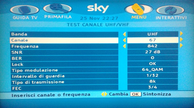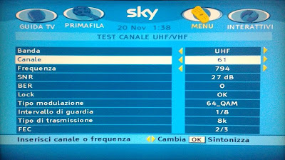 30 NOVEMBRE 2011 - Mercoledì Ore 20.40 - DTS - MUX LA 3: ATTIVATO IN SICILIA DA MONTE LAURO. UHF 33 (Sicilia) Mux LA 3: Continuano le attivazioni del mux LA 3 in tutta Italia. E' stato acceso anche da Monte Lauro sul canale 33 UHF. Da questa postazione copre le province di Agrigento, Caltanissetta, Catania, Enna, Messina, Reggio Calabria, Ragusa, Siracusa e l' Isola di Malta. Ore 20.25 - DTS - PALERMO: ATTIVATO VIDEO 2 IN DIGITALE SUL CANALE 62 UHF. Da Monte Pellegrino, con copertura di Palermo e di parte della sua provincia e di quella di Messina, è stato convertito in digitale il canale 62 UHF di VIDEO 2, nel mux vengono trasmessi ben 16 canali. Ringraziamo Rednex per le foto realizzate. 26 NOVEMBRE 2011 - Sabato Ore 23.30 - DTS - UN ANNO DI TFN NETWORK: NUOVO CANALE TFN IN FLIGHT. Tanti auguri per il primo anno in digitale terrestre al gruppo TFN NETWORK. 25/11/10 - 25/11/11 Mux TFN DVB-T UHF 67 E proprio ieri sono iniziate le trasmissioni del nuovo canale TFN IN FLIGHT. E' cambiato anche il Fec da 1/2 a 3/4. 21 NOVEMBRE 2011 - Lunedì Ore 21.30 - DTS - MUX MEDITERRANEO: RISOLTI I PROBLEMI TECNICI DA MONTE LAURO. E' stato sistemato il problema del mux MEDITERRANEO, sul canale 61 UHF dalla postazione di Monte Lauro. Era un banalissimo cavo a creare gli squadrettamenti su tutti i canali del mux. In allegato le foto delle quattro emittenti e del segnale preso con la Digital Key di Sky. 18 NOVEMBRE 2011 - Venerdì Ore 09.00 - DTS - MUX MEDITERRANEO: PROBLEMI TECNICI DA MONTE LAURO. Ci sono alcuni problemi tecnici sul canale 61 UHF del mux MEDITERRANEO dalla postazione di Monte Lauro. I canali del multiplex vanno in onda con continui sganci e squadrettamenti dovuti molto probabilmente a valori non corretti dell'intervallo di guardia e del FEC. Ore 08.50 - DTS - SERVIZIO PUBBLICO: LE IMMAGINI DI ANTENNA SICILIA. Nelle scorse settimane vi avevamo proposto alcune immagini tratte da alcune emittenti locali del Piemonte, Lombardia, Trentino, Lazio e Abruzzo e Lombardia della trasmissione di Santoro "Servizio Pubblico, oggi vi proponiamo quelle di Antenna Sicilia, con alcuni scatti nella puntata di ieri sera. 10 NOVEMBRE 2011 - Giovedì Ore 14.00 - DTS - MONTE LAURO (SR): LE IMMAGINI DEI TRALICCI. Pubblichiamo alcune immagini dei ripetitori radio tv di Monte Lauro, in provincia di Siracusa. Le foto sono state realizzate da Massimo del gruppo Mediterraneo. Ore 13.05 - DTS - MUX D-NETWORK: INSERITI DUE NUOVI CANALI, D9 E D10. Ch.57 - Ch.58 mux D-NETWORK: Sono stati aggiunti due nuovi canali nel mux D-NETWORK, D9 RT Sicilia e D10 Music, che inizieranno le trasmissioni entro il prossimo Natale. |