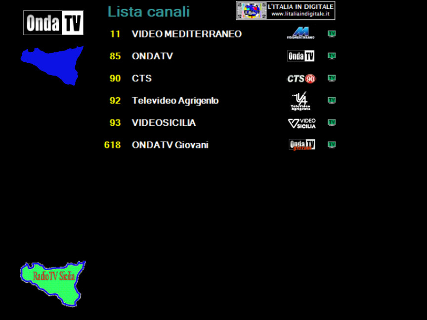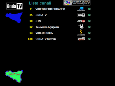 Ore 14.50 - MUX ONDA TV: LEGGERMENTE MODIFICATO IL LOGO DI ONDATV GIOVANI. UHF 46 Mux ONDA TV Rispetto alla nostra ultima rilevazione di questo multiplex, segnaliamo che è stata effettuata una leggera modifica nel logo dell'emittente ONDATV Giovani, sintonizzabile con la numerazione LCN 618. Infatti la scritta “giovani” non è più di colore giallo, ma di colore rosso. Per l’occasione abbiamo aggiornato la griglia dei canali e lo z@pping Tv del mux ONDA TV. ![]() A sinistra il nuovo logo di ONDATV Giovani, a destra quello precedentemente usato. Abbiamo aggiornato la composizione e realizzato lo z@pping TV con le immagini dei canali del mux ONDA TV, emittente con sede a Sant'Agata Militello in provincia di Messina che trasmette sulla costa tirrenica sulla frequenza UHF 46. Il multiplex è composto da 6 canali, oltre le due emittenti del gruppo ONDATV (LCN 85) e ONDATV Giovani (LCN 618), sono sintonizzabili VIDEO MEDITERRANEO (LCN 11), CTS (LCN 90) con in sovraimpressione il logo CTS NOTIZIE.it e un simbolo con la numerazione CN 90, abbreviazione di canale 90, Televideo Agrigento (LCN 92) e VIDEOSICILIA (LCN 93), quest'ultima sempre a schermo nero con uno sgancio video. Consulta la griglia dei canali e lo z@pping TV del mux ONDA TV. Ringraziamo Bruno per averci fornito gli screenshots delle emittenti.![]() ![]() 20 NOVEMBRE 2013 - Mercoledì Ore 10.00 - MUX ONDA TV: ATTIVATO L'UHF 46 A MISTRETTA (ME). UHF 46 Mux ONDA TV E' stato attivato il mux ONDA TV sulla frequenza UHF 46 nella località di Mistretta (Messina) in polarizzazione orizzontale dalla postazione di CONTRADA ANTACO. Consulta la griglia dei canali e lo z@pping TV del mux ONDA TV. 14 OTTOBRE 2013 - Lunedì Ore 11.40 - MUX ONDA TV: AGGIORNATA LA GRIGLIA DEI CANALI E REALIZZATO LO Z@PPING TV. UHF 46 Mux ONDA TV |