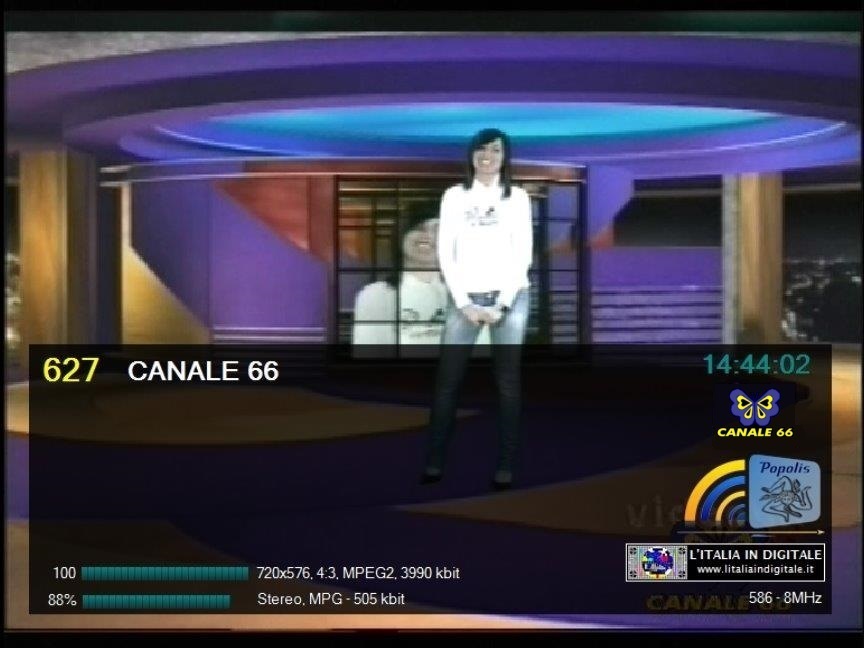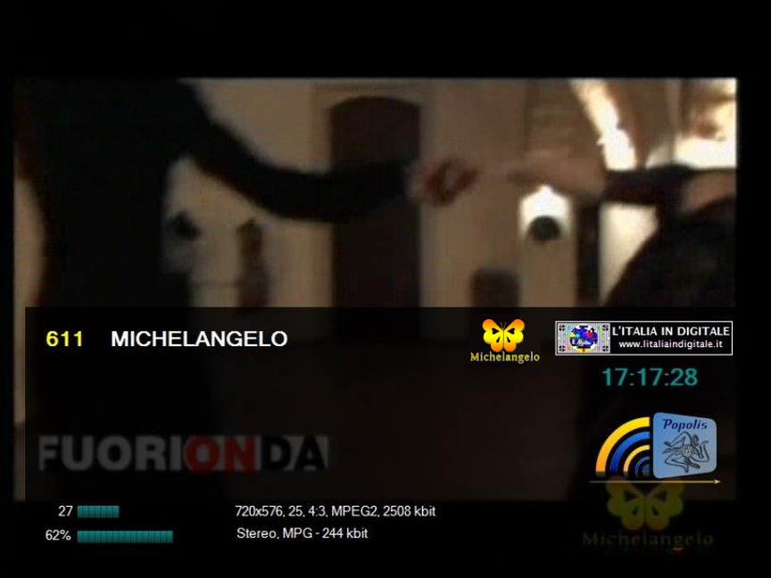 Ore 18.55 - MUX TELE NOVA SICILIA: ARRIVA MICHELANGELO, ELIMINATO CANALE 66. UHF 35 Mux TELE NOVA SICILIA Nel mux TELE NOVA SICILIA è stato inserito il nuovo canale MICHELANGELO con la numerazione LCN 611. Questa emittente fa parte del gruppo Video Staff Comunication che detiene anche CANALE 66 con la LCN 632. CANALE 66 è stata eliminata da questo multiplex ma rimane visibile sempre con la LCN 632 sul mux MEDITERRANEO 1. ![]() ![]()