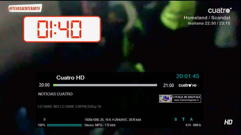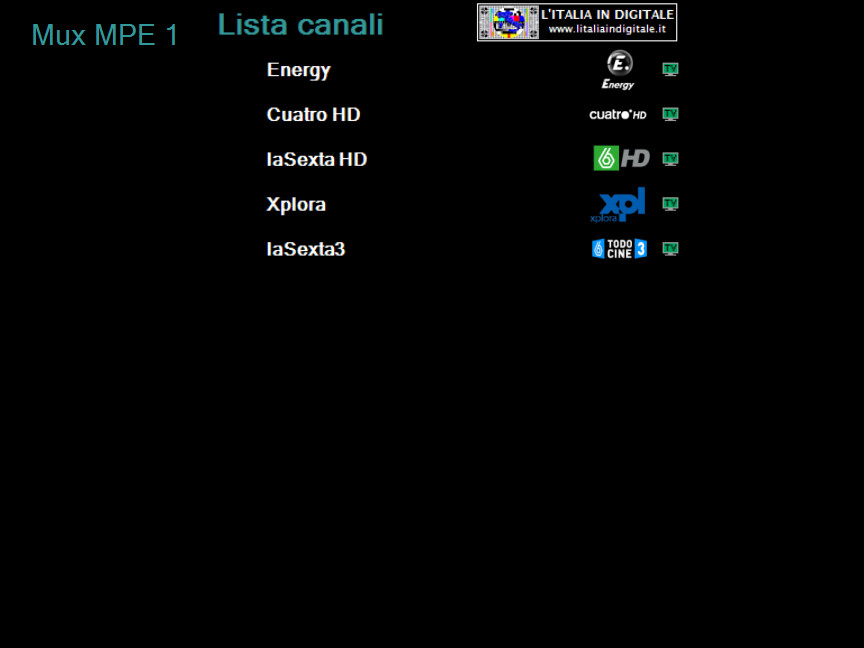 Mux MPE 1 Le NEWS del mux MPE 1 del 2014 26 APRILE 2014 - Sabato Ore 21.25 - SPAGNA IN DIGITALE (4°PUNTATA) - LE TV A VALENCIA, MUX MPE 1: INSERITO LO Z@PPING TV. Quarta puntata dello speciale SPAGNA IN DIGITALE. Implementiamo ulteriormente lista delle TV A VALENCIA inserendo lo z@pping TV del mutiplex nazionale MPE 1 che trasmette sull' UHF 46. ![]() LE TV A VALENCIA UHF 46 Mux MPE 1 Il mux MPE 1 veicola 5 emittenti TV (di cui due sono in HD). Energy Energy è un canale televisivo privato che appartiene al gruppo Mediaset Espana Communication e si rivolge ad un pubblico maschile. Ha iniziato le trasmissioni di prova il 19 dicembre 2011 mentre la programmazione ufficiale è iniziata il 9 gennaio 2012. Gli ascolti di Energy nei primi mesi del 2014 si sono attestati su una media nelle 24 ore dell' 1,2 %. ![]() Cuatro HD è un canale televisivo privato gestito da
