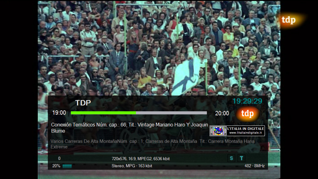 Mux RGE 2 Le NEWS del mux RGE 2 del 2014 24 APRILE 2014 - Giovedì Ore 13.25 - SPAGNA IN DIGITALE (3°PUNTATA) - LE TV A VALENCIA, MUX RGE 2: INSERITO LO Z@PPING TV. Terza puntata dello speciale SPAGNA IN DIGITALE. Dopo aver introdotto la nuova sezione Iberica, con la lista delle TV A VALENCIA , nella scorsa puntata abbiamo analizzato i canali trasmessi dal Mux RGE 1, inserendo il relativo z@pping TV. ![]() LE TV A VALENCIA UHF 22 Mux RGE 2 Oggi vediamo in dettaglio i canali trasportati dal Mux RGE 2 che nella zona di Valencia viene trasmesso sull' UHF 22. Esso veicola 2 emittenti TV (una in HD e l' altra in SD), 2 radio e 1 canale dati (a schermo nero). ![]() TDP TVE-HD Pruebas Canal Ingenieria Radio Clasica HQ Radio 3 TDP Teledeporte è un canale sportivo spagnolo di proprietà di TVE (Television Espanola) lanciato nel 1994 attraverso il satellite Hispasat. E' stato il secondo canale sportivo in Spagna dopo Eurosport. Fino al 2005 è stato veicolato sottoforma di canale a pagamento, poi con l'arrivo del digitale terrestre il canale è diventato free to air. TDP che trasmette dal centro di produzione di Barcellona, manda in onda i principali eventi sportivi spagnoli e internazionali. L'emittente fa spesso uso delle sue teche mandando in onda eventi sportivi d'archivio. Gli ascolti nei primi mesi del 2014 assegnano a TDP lo 0,9% di share. ![]() TVE-HD Pruebas è il canale test in alta definizione della Radiotelevisión Española RTVE (il canale ricorda il nostro RAI HD che trasmette i principali eventi dei palinsesti RAI in alta definizione). ![]() Canal Ingeneria è un canale dati (a schermo nero) non mostrato nella lista dei canali della maggior parte dei televisori. Questo servizio viene utilizzato solo per trasmettere gli aggiornamenti software per TV e ricevitori (OTA). Radio Clasica HQ è una stazione radio spagnola gestita da Radio Nacional de España, precedentemente nota come Radio 2. Radio Clásica trasmette principalmente musica classica ma anche musica folk, jazz, flamenco, zarzuela, opera e musica popolare. Ha anche programmi culturali dedicati alla didattica, letteratura e danza. Radio Clásica è stata lanciata nel 1965 come il Segundo Programa (secondo programma) di RNE, ed era conosciuta come RNE 2 dal 1988 fino al 1994 e come RNE C dal 1994 fino al 1999. ![]() Radio 3 è il terzo programma di RTVE Radio Nacional de España e trasmette per la maggior parte della giornata musica indie, alternative rock, musica elettronica e hip hop. Inoltre a Radio 3 vanno in onda altri programmi musicali a tema, come musica spagnola folk, flamenco, world music, jazz, country, blues, musica brasiliana, heavy metal, punk e musica new age. Oltre alla musica Radio 3 trasmette anche originali radiofonici drammatici e divulga notizie da diverse espressioni culturali della letteratura, cinema, teatro e arti visive. RNE Radio 3 ha iniziato le trasmissioni nel 1979 come El Tercer Programa (il terzo programma) ed ha adottato il nome attuale nel 1981. ![]() Consulta la griglia dei canali con i relativi dettagli tecnici e lo z@pping TV del mux RGE 2 insieme alla lista delle TV A VALENCIA. Non perdetevi le prossime puntate dello speciale SPAGNA IN DIGITALE dove analizzeremo la composizione degli altri provider nazionali e locali. © L'ITALIA IN DIGITALE 2009 > 2014www.litaliaindigitale.it ![]() A cura di Andrea Pomilio & Riccardo Gaffoglio |